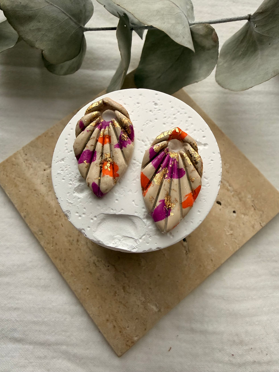 Plume - Beige, orange, fuchsia et or -